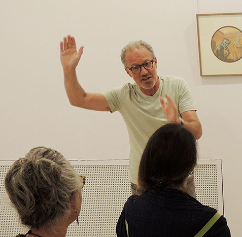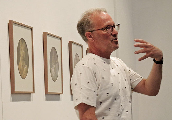 Las ilustraciones que aquí se ofrecen para su exposición conservan y atesoran lo ya realizado por tantas generaciones de artistas. Se incluyen antiguas imágenes que conviven en contextos que, estilísticamente, atraviesan siglos. Y de la misma manera que el poeta florentino se sirve de más de una lengua para conformar sus cánticas, como también se sirve de traducciones al toscano de célebres citas latinas (siempre mejorándolas, según J. L. Borges), de la misma manera, digo, utilizo una adición de imágenes de diversa procedencia agrupadas en una nueva sintaxis. También he practicado la antigua y moderna manera jeroglífica de construir emblemas y anuncios publicitarios. Esta es la razón por la que todas las figuras ostentan el mismo valor y se aclaran unas a otras. ¿Hará falta recordar que la palabra figura denota una continuada e inacabada génesis plástica? En este afán se han esforzado, durante décadas, algunas de las variantes de lo que se ha dado en llamar Nueva Figuración.