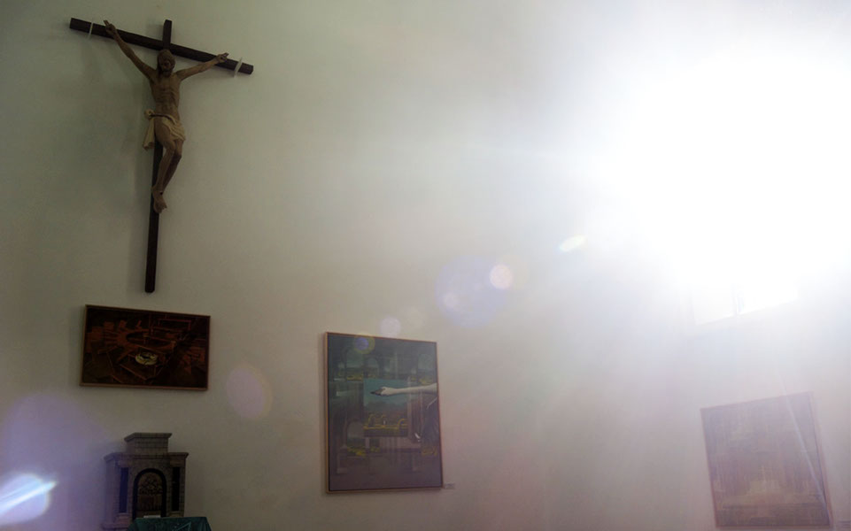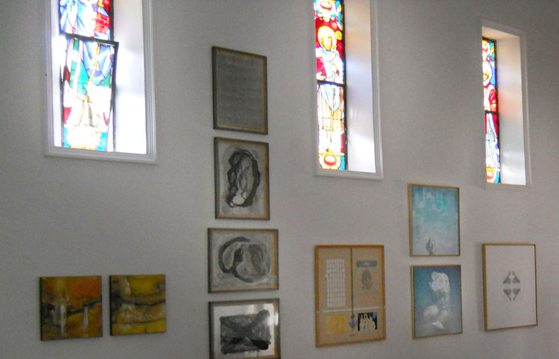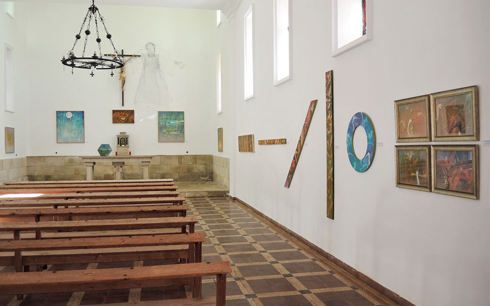 Nada más descender del coche, nos recibe como si supiera quienes somos y que veníamos. Y nos acompaña durante la visita por ese destartalado caserón eclesiástico que aún despierta ecos de chavales entregados a una divinidad ausente. Sus paredes adustas albergan ahora las obras que, por más de un centenar, ha emplazado Ángela entre artistas de aquí y de allí. Nombres sabidos y, muchos, nuevos para nosotros… telas al viento, lo llama. Un viento que se entremete en este patio enorme en el que ella quiere congregar sus sueños. Cada obra, cada nombre, cada rincón resuenan en su voz con la ilusión de algo que se siente dentro y sin sombras. Una fundación.