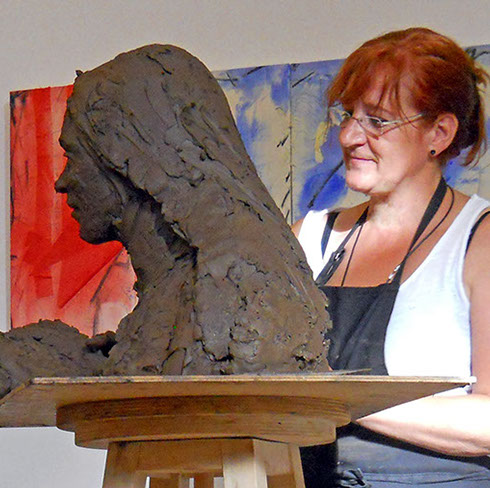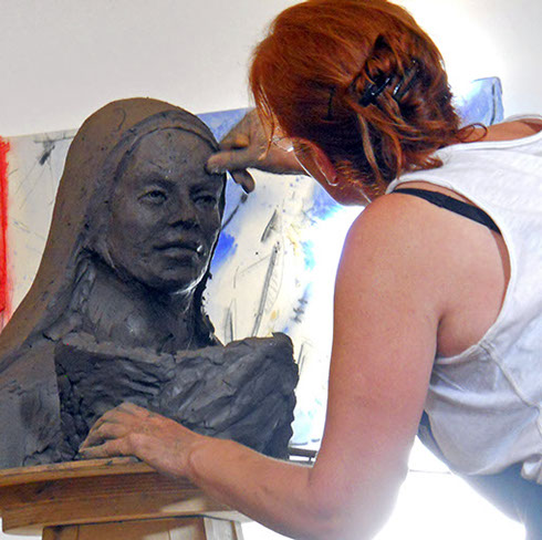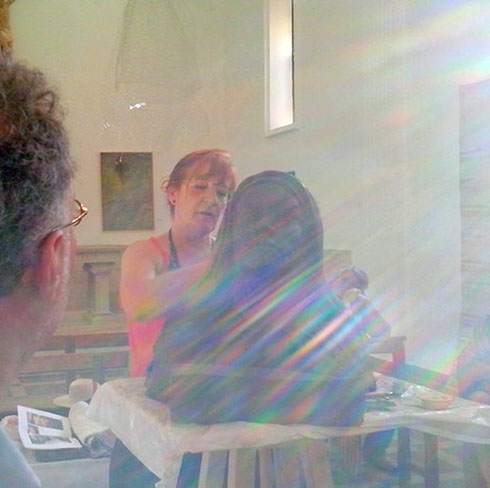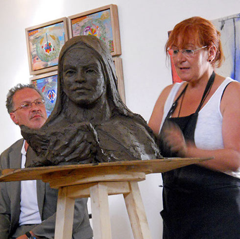 El día 4 y 18 de Julio a las 20.00 h en Santibáñez del Porma, alguien más posará para la escultora: Teresa de Ávila y lo hará acompañada del artista Adolfo Álvarez Barthe, con quien, mientras modela, hablaran sobre la ilustre Santa, el arte de la escultura y el desarrollo de los talentos femeninos.