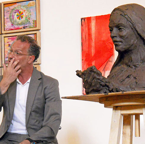 Su intervención, tiene mucho que ver con la exposición que hasta el 24 de Julio, con el título "POSA PARA MI, esculturas de Charo Acera", tiene lugar en la sala de exposiciones Ateneo Cultural el Albéitar, Universidad de León y en Kanya Enmarcación.
